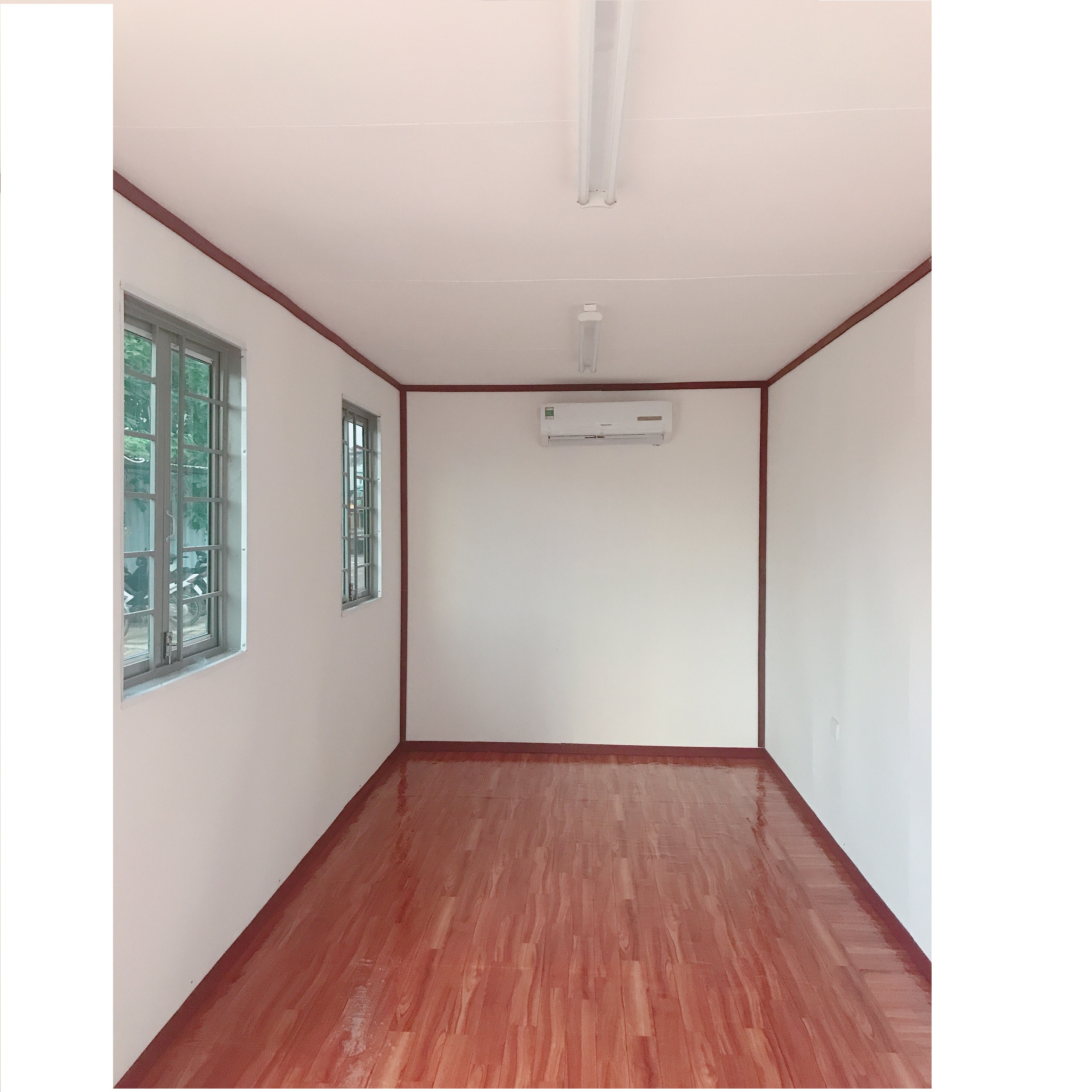 -Ván sàn container bằng gỗ dày 2,8 cm, trải tapi -Thiết kế khung sắt (2 x 2cm ), lót xốp cách nhiệt 3cm, ốp ngoài bằng gỗ , lăn sơn. |