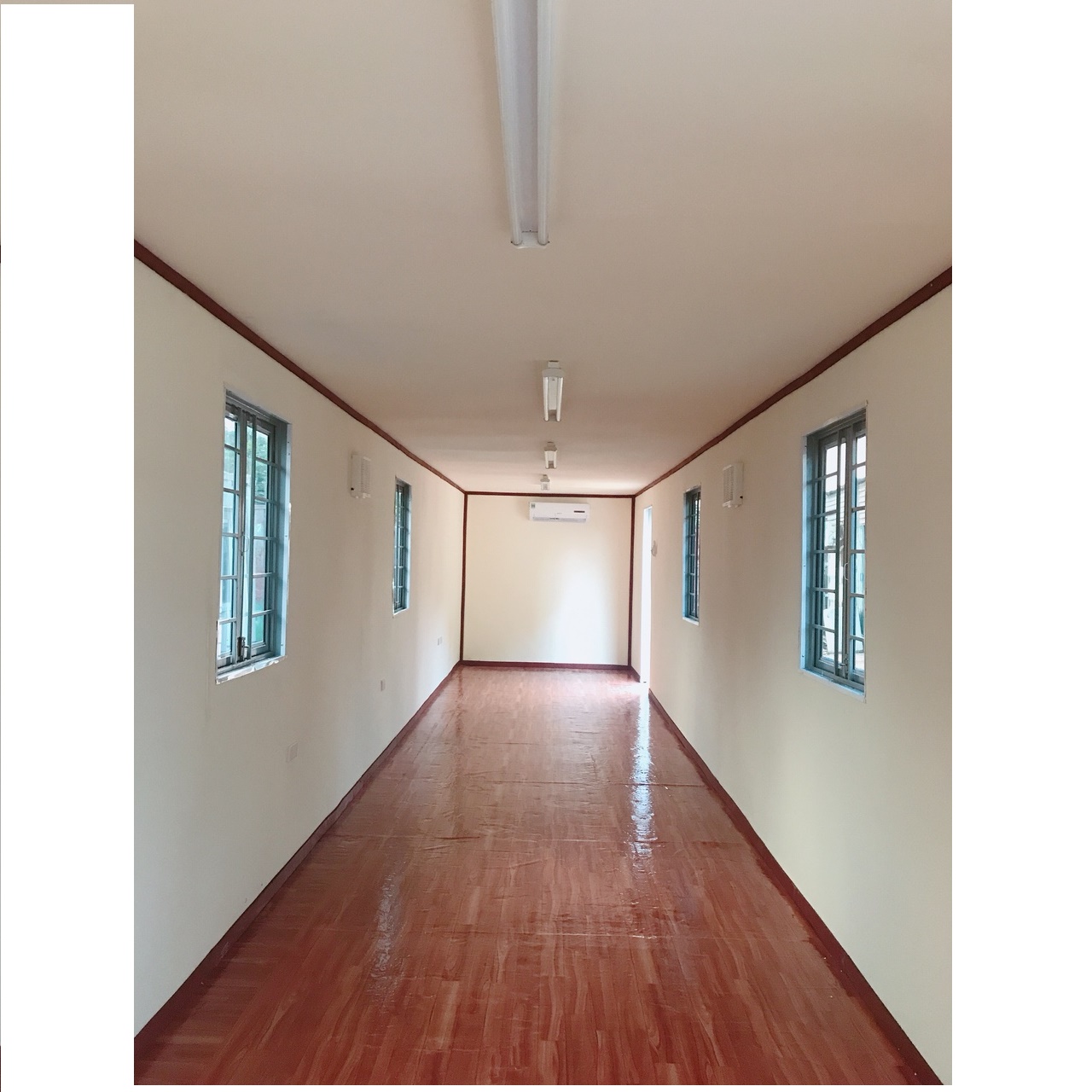 -Ván sàn container bằng gỗ dày 2,8 cm, -Thiết kế khung sắt (2 x 2cm, cách nhiệt bằng xốp, ốp ngoài bằng gỗ okal |